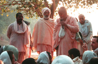 Шри-кришна-чайтанья-прабхур дасер анудаса. Нароттама Тхакур молится: «Я – слуга слуги слуги Шри Чайтаньи. Я желаю пыли с лотосных стоп всех этих слуг. О Махапрабху! О Гири-Говардхан, я молюсь Твоим лотосным стопам, потому что Ты очень милостив и можешь с легкостью даровать это служение». Мы тоже должны так молиться. Нам очень повезло, что мы приехали сюда, на Говардхан, и провели здесь не одну ночь, а целых четыре, и скоро отметим Дипавали и Аннакут. Будет приготовлено более 400 подношений для Говардхана. Я хочу, чтобы каждый из вас приготовил хотя бы одно блюдо. Вы можете спросить у Премананды Прабху, какие блюда уже приготовлены, а какие еще нужны. На рынке можно приобрести нужные продукты или, если не умеете готовить, купите какие-то особые сладости.
